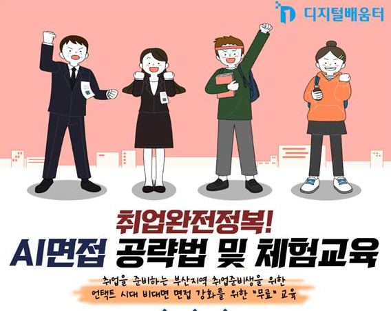참가 신청은 16일 마감되며, 정원은 80명이다. 교육은 신청 사이트를 참고해 교육생 신청-희망교육과정-디지털특별(AI면접공략법과 실습)을 신청하면 된다. 자세한 내용은 부산시 홈페이지(‘디지털 배움터’ 검색)와 전화로 확인할 수 있다.