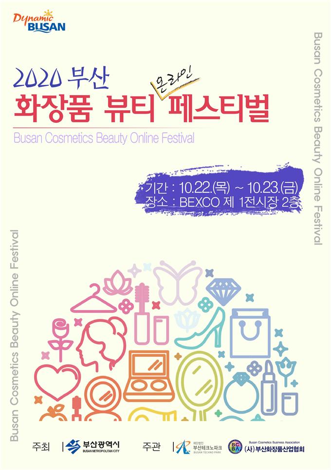 부산시(시장 권한대행 변성완)는 지역 화장품·뷰티 제품 홍보를 위한 ‘2020 부산 화장품뷰티페스티벌’을 22일과 23일 비대면 온라인 방식으로 개최한다.