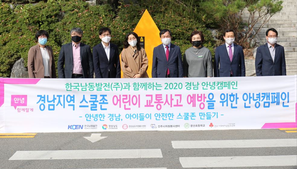 한국남동발전은 경남지역 초등학생들의 안전한 보행 환경 조성과 어린이 횡단보도 사고를 줄이기 위해 도내 14개 초등학교 인근 스쿨존에 노란발자국과 함께 옐로우 카펫을 설치하고 있다.