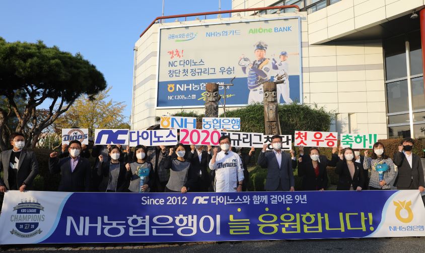 NH농협은행은 2012년부터 현재까지 NC 다이노스의 메인스폰서로서 함께해 왔으며, 금년에는 지역을 대표하는 스포츠구단인 NC 다이노스 ·경남FC와 함께 ‘2020 아름다운 동행 협약’을 통해 영농철 농촌일손돕기, 태풍피해농가 복구지원 등 지역민들의 행복을 위해 함께 상생하고 있다.