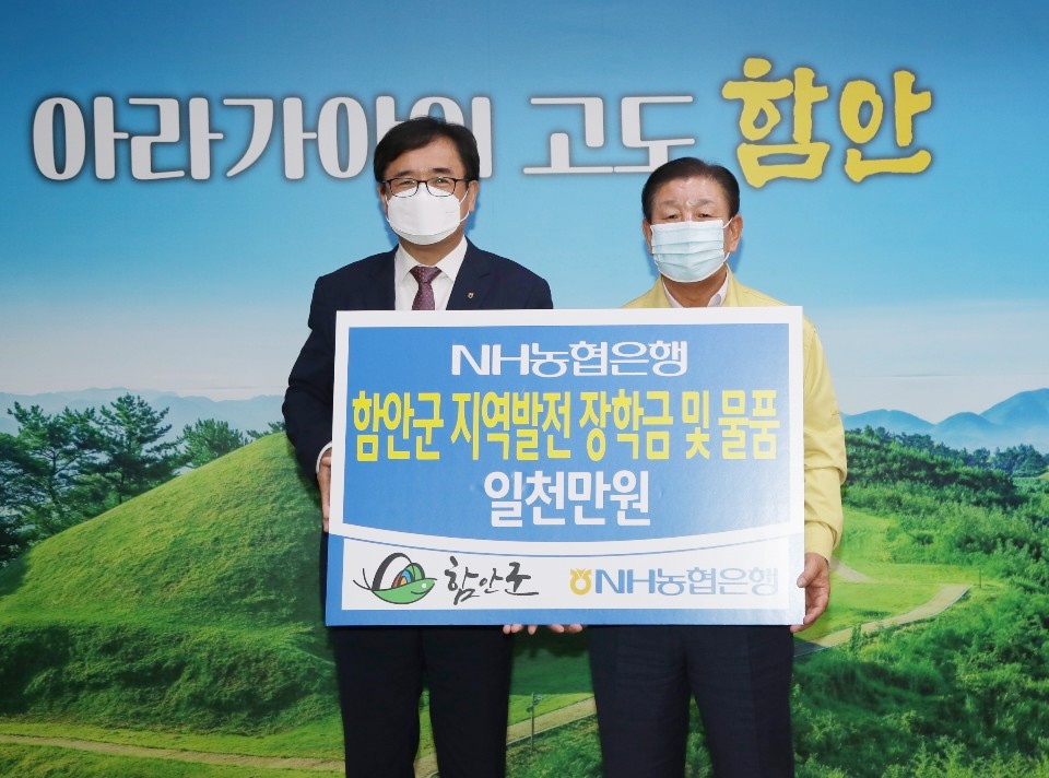 NH농협은행은 지난 9월 농협장학금 5천만원을 함안군에 기탁한데 이어, 추석맞이 저소득층 이웃돕기성금 1천만원, 그리고 이날 1천만원 상당의 장학기금과 물품 기부로 함안군 지역발전 및 군민 복지향상에 지원을 아끼지 않고 있다.