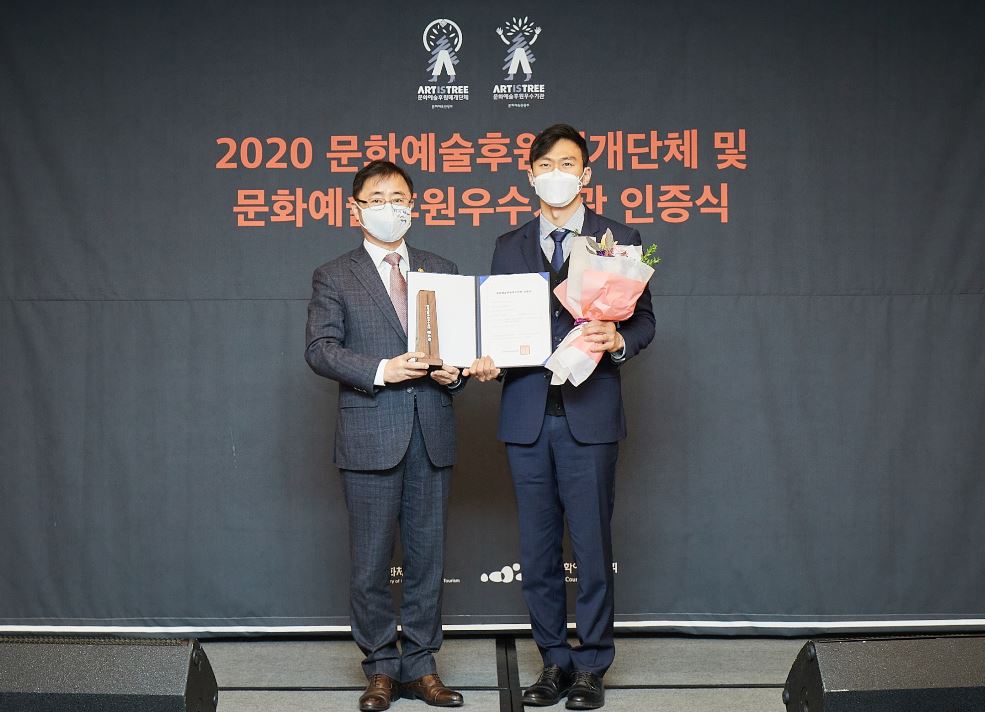 지난 28일 서울시 강남구 JW메리어트 서울에서 열린 2020 문화예술후원매개단체 및 문화예술후원우수기관 인증식에서 지역 예술단체를 지원하고 지역 문화활성화 및 지역민에게 다양한 문화향유의 기회를 제공한 공로로 문화예술후원 우수기관 인증패를 받았다.