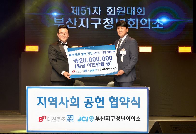 대선주조는 부산지구청년회의소가 지역사회의 청년리더로서 자리매김하는 데 도움을 주기 위해 3년 연속 후원을 결정했다.