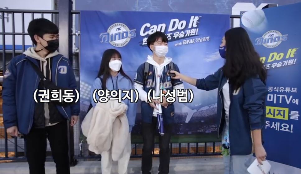 권희동ㆍ양의지ㆍ나성범 선수를 각각 응원하는 NC 다이노스 열혈 팬 3남매는 “해왔던 것처럼 긴장하지 말고 건강하게 가장 높은 곳에서 마무리하기를 바란다”고 바람을 전했다.