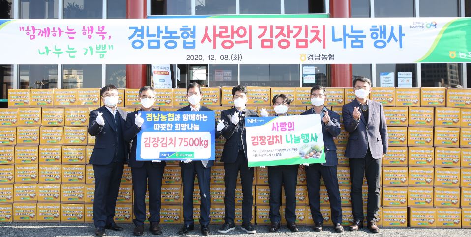 경남농협(본부장 윤해진)에서는 지난 8일 경남농협 정문 앞에서 코로나19로 더욱 힘든 시기를 보내고 있는 경남도내 취약계층을 대상으로 사랑을 실천하기 위해 ‘코로나19 극복 사랑의 김장나눔 행사’를 실시했다.