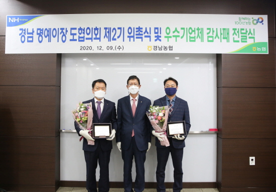 경남농협(본부장 윤해진)은 9일 남창원농협농수산물유통센터 소회의실에서 제2기 경남 명예이장 도협의회 위촉식과 더불어 우수기업체에 대한 감사패를 전달했다.<사진>