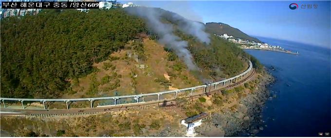 이날 오후 1시 28분경 해운대구 중동 산42-25번지(문텐로드 해월정 아래) 일원에서 산불이 일어났으나 부산시 소방당국의 신속한 초동대처로 피해를 최소화했다.