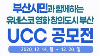 부산시(시장 권한대행 변성완)와 (재)영화의전당(대표이사 방추성)은 14일부터 20일까지 부산 시민과 함께하는 ‘유네스코 영화 창의도시 부산 UCC 공모전’을 개최한다.