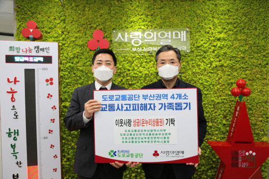 도로교통공단 부산광역시지부(지역본부장 문용호), TBN부산교통방송(사장 강종규), 남부운전면허시험장(단장 장재길), 북부운전면허시험장(단장 김병석) 등은 21일 오후 부산사회복지공동모금회(회장 신정택)에 교통사고 피해자 가족 돕기 이웃사랑 성금을 기탁했다.