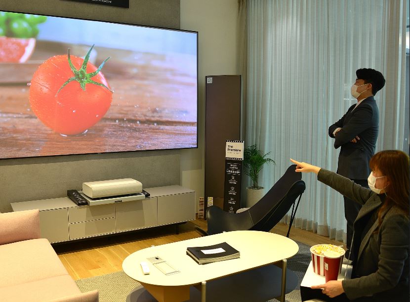 롯데백화점 부산본점은 새롭게 출시되는 삼성전자 가정용 프로젝터 ‘더 프리미어’를 선보인다. 4K 트리플 레이저 기술로 초고화질을 자랑하며 330cm의 대화면으로 영상 송출이 가능하다. 출시 기념 오는 1월 말일까지 구매 고객 대상 그랜드뷰 매칭 스크린 및 까사미아 가구장 50% 할인을 진행하며 티빙 무비 프리미엄 6개월 이용권을 증정한다. 가격은 7백만원대다.