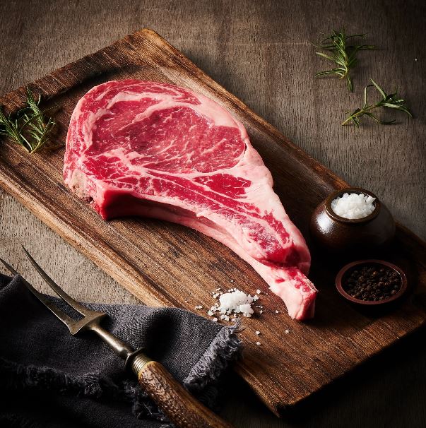 롯데마트는 31일까지 ‘본-인 스테이크’ 2종을 엘포인트 회원 대상 40% 할인 판매해, ‘토마호크 스테이크(390g/냉장/미국산)’를 3만 6000원에, ‘티본 스테이크(560g/냉장/미국산)’를 3만 2400원에 판매한다.