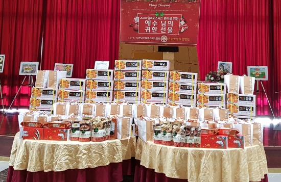 후원품은 과일박스 성탄축하 롤케이크, 삼계탕, 육개장, 한우사골, 김 등 조리식품 등으로 가정에서 따뜻한 한 끼를 할 수 있도록 준비했다.
