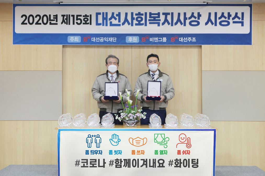 [부산=일요신문] 부산을 대표하는 향토기업 BN그룹의 대선주조(주)가 설립한 대선공익재단( 이사장 조성제 )은 2020년 제15회 대선사회복지사상 시상식을 코로나19 확산 예방을 위한 정부의 사회적 거리두기 지침에 따라 지난 24일 전면 비대면 행사로 개최했다.