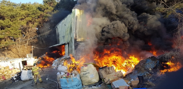 [경남=일요신문] 지난 9일 오후 3시 43분경 창원시 의창구 동읍 금산리 소재 재활용 플라스틱 분류업체에서 화재가 발생했다.