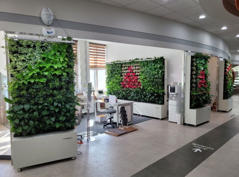 수직정원과 식물재배기는 공기 중의 포름알데하이드, 이산화탄소, 미세먼지 등을 빨아들인 후 깨끗해진 공기를 다시 내보내는 친환경 시스템으로 공기정화 효과가 큰 것으로 알려져 있다.