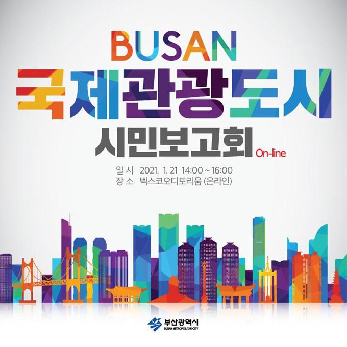 부산시(시장 권한대행 변성완)는 21일 오후 2시 벡스코 오디토리움에서 국제관광도시 육성사업의 성공적 추진과 대시민 공감대 형성을 위한 ‘국제관광도시 온라인 시민보고회’를 개최한다.