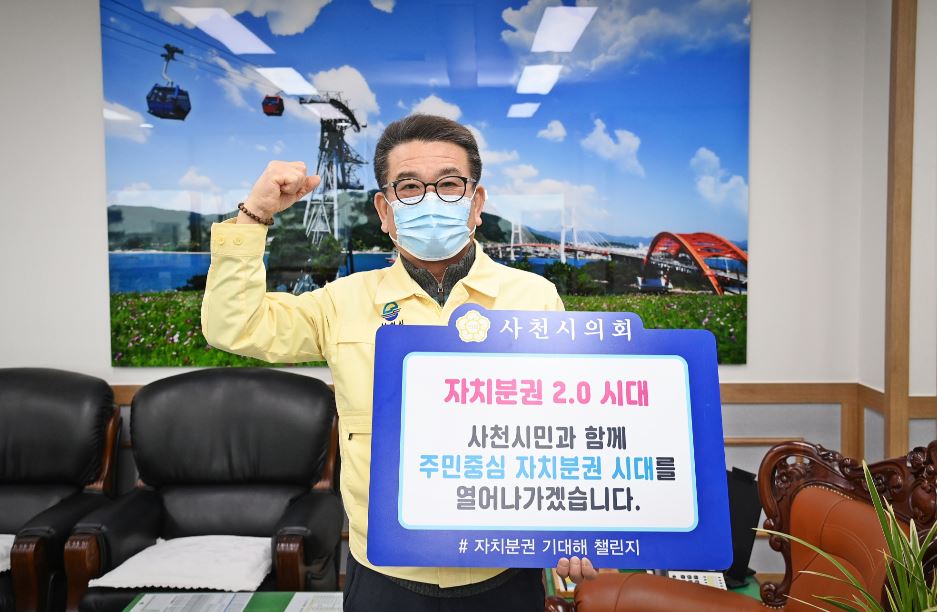 이삼수 사천시의회 의장이 21일 ‘자치분권 기대해’ 챌린지에 동참했다
