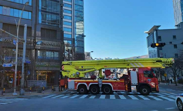 29일 해운대구 우동 D아파트에 고드름이 생겨 소방에서 제거작업을 펼치면서 이날 오전 9시 36분경부터 정오까지 센텀동로 5차로가 전면 통제됐다.