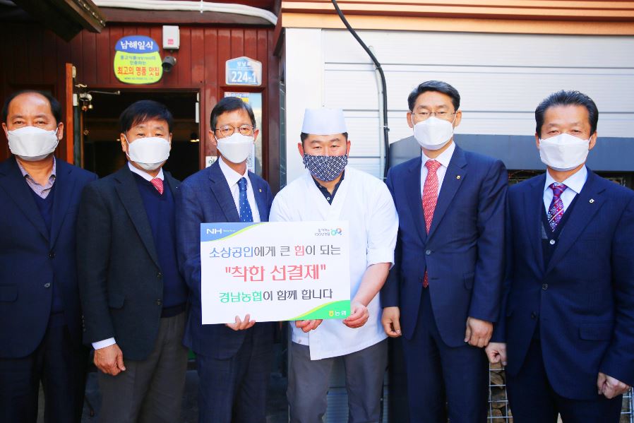 경남농협은 지난 2일 창원시 신월동 소재 식당에서 경상남도가 추진 중인‘착한 선결제 캠페인’에 동참했다
