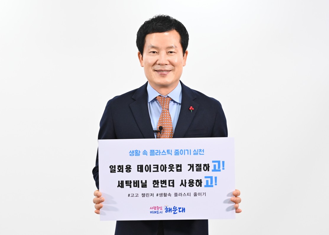[부산=일요신문] 홍순헌 해운대구청장은 “일회용 테이크 아웃 컵은 거절하고, 세탁비닐은 한 번 더 사용하겠다”고 약속했다.
