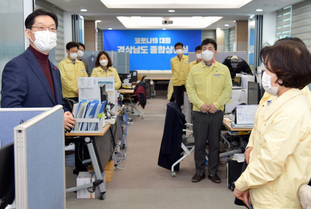 김경수 경남도지사가 8일과 9일 민생현장 격려 방문에 이어 10일에는 현장 근무자와 코로나19와 재난상황 대비에 애쓰고 있는 직원들을 찾아가 격려했다.