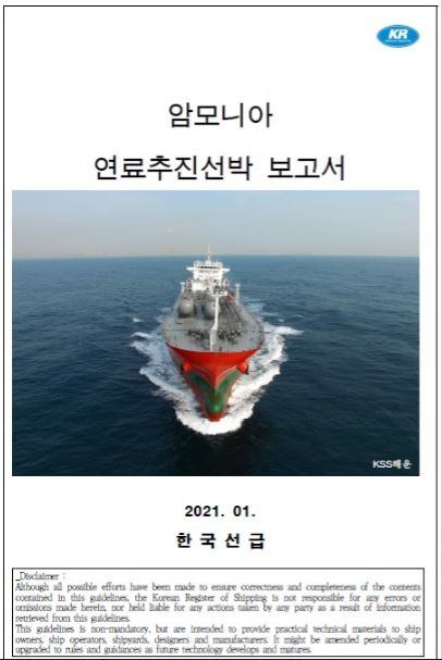 한국선급은 2019년 ‘친환경 미래선박 연료 전망 기술서’를 통해 선박 연료로서 암모니아의 특징 등을 분석해 고객들에게 유용한 기술정보를 제공한 바 있다. 또 지난해 선박 설계사(㈜이멕), 선박 엔진 제작사(만에너지솔루션즈), 싱가폴 선사(나빅8)와 함께 공동으로 8K 크기의 암모니아 벙커링 선박에 대한 위험도 평가 및 개념승인(AIP)을 완료했다.