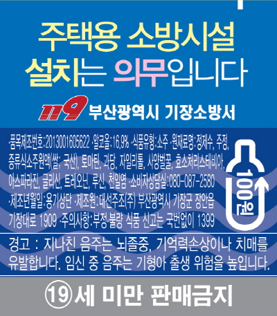 대선주조는 기장소방서와 함께 시민들이 접근하기 쉬운 소주병을 활용한 홍보를 상시 진행하고 있다. 올해도 지난해에 이어 대선소주에 ‘주택용 소방시설 설치는 의무입니다’라는 문구를 인쇄한 보조라벨을 부착해 홍보에 나선다.