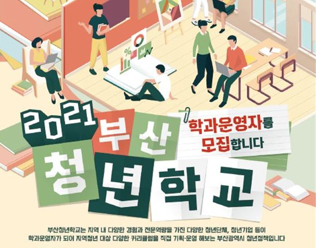 부산시(시장 권한대행 이병진)는 청년들의 사회참여 촉진 플랫폼인 부산청년학교를 이끌어나갈 학과운영자를 3월 15일부터 모집한다고 밝혔다.