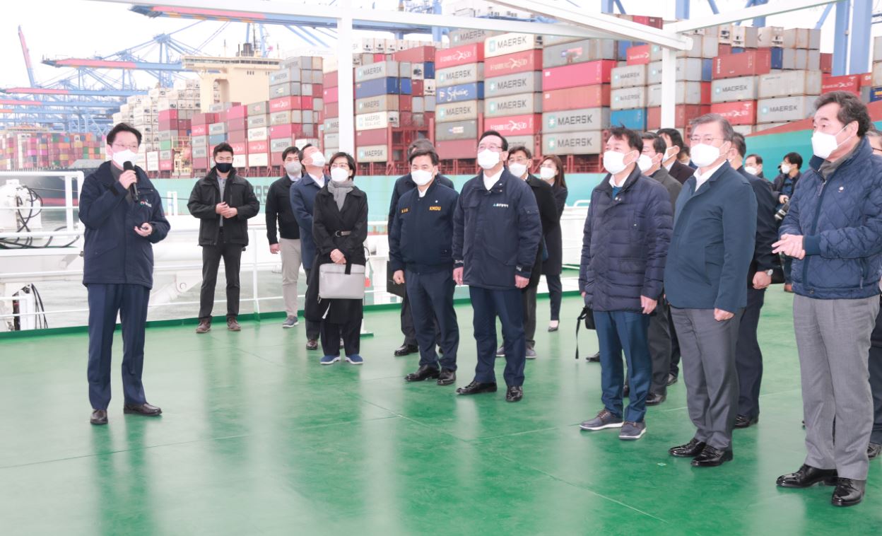 브리핑이 진행된 선상 뒤로 보이는 대형 컨테이너선을 가리킨 김 지사는 “부산신항과 가덕신공항을 중심으로 배후도시에 고부가가치 물류산업이 들어와야 한다”며 “대한민국이 새롭게 동북아 물류의 거점이 되도록 스마트물류 플랫폼을 구축해 나가겠다”고 밝혔다.