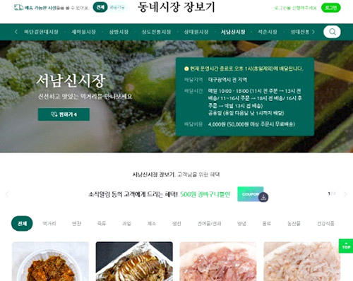 여기에, 문화관광형 시장으로 선정된 ‘서남신시장’의 경우 현재 네이버 온라인 장보기 서비스를 시범 운영 중이다. 2019년부터 상권 활성화 구역으로 지정된 ‘칠성종합시장’도 칠성원시장 등 3개 시장이 연합해 다음달 중 네이버 온라인 장보기 서비스를 지원하기 위해 공동 배송센터 등 인프라 구축을 완료하고 본격 홍보를 펼치고 있다.