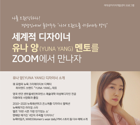 특정 분야의 전문가를 초청해 직무와 직업에 대한 이야기와 더 나아가 자기개발에 대한 조언까지 들어보는 이번 특강에서 경성대는 하이엔드 브랜드 ‘YUNA YANG’의 대표인 유나 양 디자이너를 초청했다.