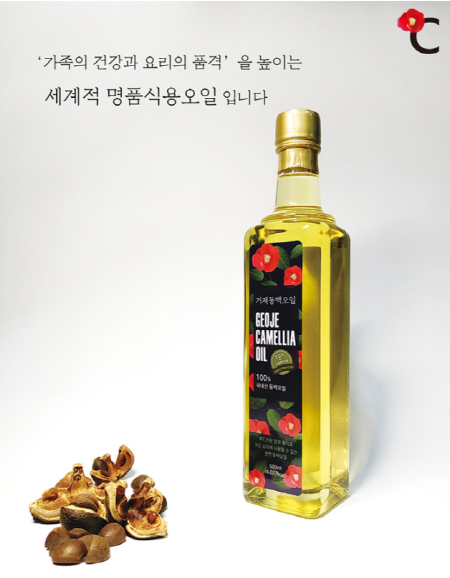 거제동백오일은 머릿기름으로 대표되던 동백오일의 이미지에서 벗어나 식용 가능한 고급 오일이면서 피부에 바르는 화장품도 가능한 겸용 제품이다.