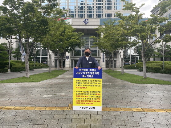 지난 18일부터 매일 1인 시위에 나서 이번이 10번째다. 오규석 기장군수는 ㈜풍산의 기장군 이전 계획이 철회될 때까지 1인 시위를 계속 이어간다는 입장이다.