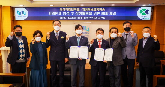 이날 협약식에는 권순기 경상국립대 총장 이지영 인재개발원장, 이윤임 인재개발원 행정실장과 손영진 TBN경남교통방송 사장과 최경호 편성제작국장, 김형철 심의팀장 등 10여 명이 참석했다.