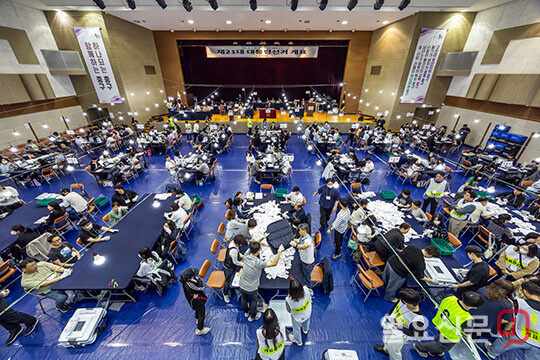 분주한 개표사무원들