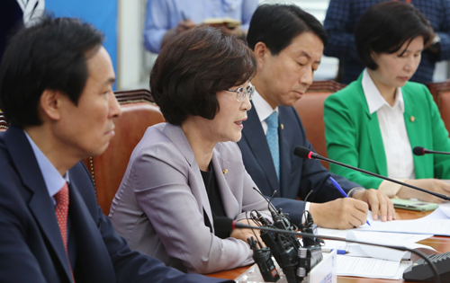 [일요신문] 더불어민주당 김상희 서민주거 TF 단장이 1일 오전 국회 원내대표실에서 열린 서민주거TF 발족식에서 인사말을 하고 있다.