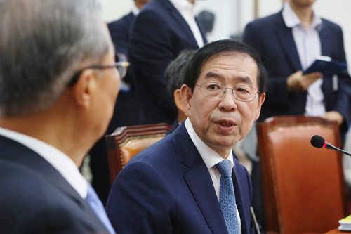 [일요신문] 박원순 서울시장이 8일 오전 여의도 국회에서 구의역 스크린도어 노동자 사망 사건과 관련해 열린 더불어민주당-서울시 정책간담회에 참석해 발언하고 있다.
