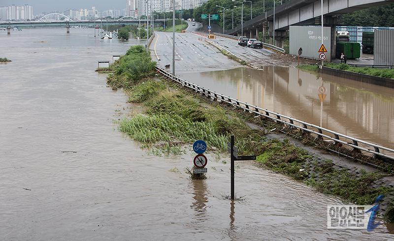 [일요신문] 장마전선의 영향을 받고있는 5일 오후 서울 월릉교 부근 동부간선도로 하행선 차로 통행이 통제되고 있다. 2016.7.5 고성준 기자