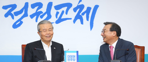 [일요신문] 이정현 새누리당 신임 대표가 10일 오후 여의도 국회 더불어민주당 김종인 비대위 대표를 찾아 이야기를 나누고 있다.