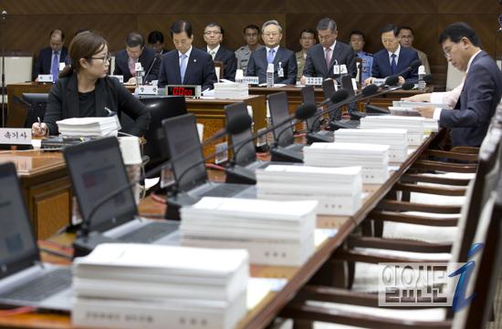 국정감사 첫날인 26일 서울 용산 국방부 대회의실에서 예정된 국방부 국감이 여당 의원들의 불참으로