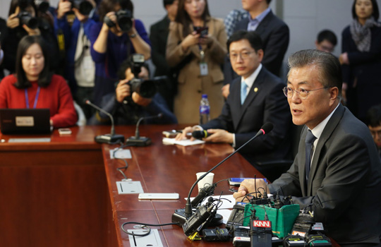 [일요신문] 15일 오후 여의도국회에서 박근혜 대통령의 '국정농단' 에 관한 대국민 기자회견을 갖은 문재인 더불어민주당 전 대표가 취재진의 질문에 답하고 있다.