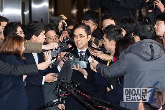 [일요신문] '최순실 국정농단' 사태 핵심 인물 중 한명인 김종 전 문화체육관광부 제2차관이 16일 오전 서울 서초구 서울중앙지검에 피의자 신분으로 출석해 취재진의 질의에 답변하고 있다. 김 전 차관은 더블루케이와 K스포츠재단 운영을 지원했다는 의혹과 최순실씨(최서원으로 개명) 딸 정유라씨(정유연에서 개명)의 승마 국가대표 선발 과정에 관여했다는 의혹을 받고 있다. / 최준필 기자 choijp85@ilyo.co.kr