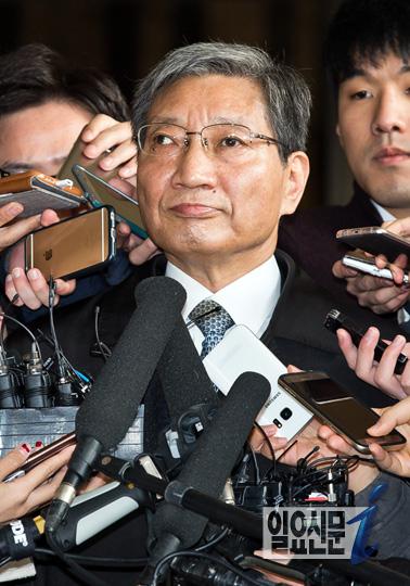 [일요신문] 장충기 삼성그룹 미래전략실 사장이 18일 오전 서울 서초구 서울중앙지방검찰청에 참고인 신분으로 조사를 받기위해 출석하고 있다. / 최준필 기자 choijp85@ilyo.co.kr