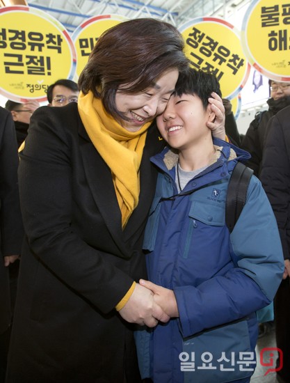 정의당 심상정 상임대표가 아이와 다정하게 포옹을 하고 있다. 2017.01.26