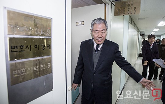 [일요신문] 최순실씨의 변호인 이경재 변호사가 26일 오전 서울 서초구 자신의 법률사무소 앞에서 기자회견을 하기위해 들어서고 있다. 이날 이 변호사는 기자회견에서 "특별검사팀이 최순실씨에게 폭언과 위협을 가했다"고 주장했다. 2017.1.26 고성준 기자