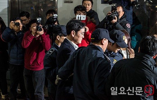 [일요신문] 구속수감된 이재용 삼성전자 부회장이 18일 오후 서울 강남구 대치동 박영수 특별검사팀 사무실에 출두하고 있다. / 최준필 기자 choijp85@ilyo.co.kr