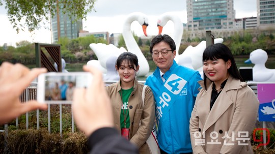 [일요신문]유승민 바른정당 대선후보가 제19대 대통령선거 공식 선거운동 첫날인 17일 오후 서울 송파구 석촌호수 앞에서 유권자들과 기념사진을 찍고 있다.