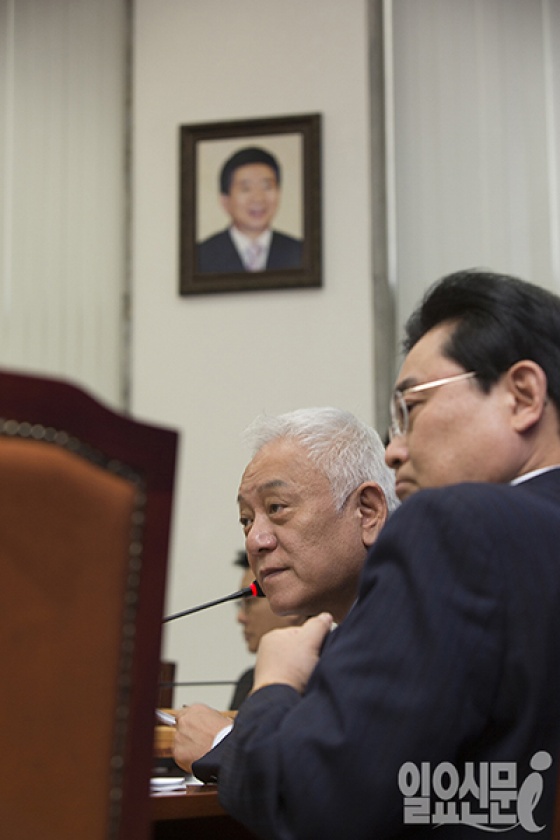 [일요신문] 3일 오전 국회에서 열린 민주당 최고위원 회의에서 전병헌 원내대표가 김한길 대표의 발언준 하늘을 바라보는등 미래에 대한 불안감과 신당창당의 기대감이 혼재되고 있다. 그동안 김대중 전 대통령과 노무현 전 대통령의 정신을 이어가겠다는 민주당의 주된 흐름은 이번 결정에서 어떻게 변해갈지 예상되지 않는다.
