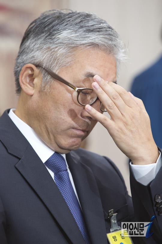 김종덕 문화체육관광부 장관 후보자의 곤혹스런 표정