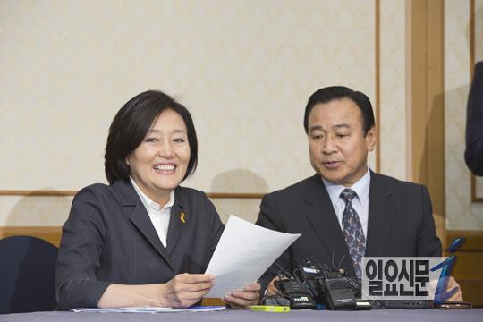 [일요신문] 19일 오후 여야원내대표가 세월호 특별법에 합의했다. 이완구 새누리당 원내대표와 박영선 새정치민주연합의 원내대표는 지난 7일에 이루었던 합의가 새정치 민주연합의 거부로 험난한 재협상의 과정을 거쳐 7월 임시국회의 마지막날 극적으로 타결 되었다. 박영선 원내대표가 환하게 웃고 있다.